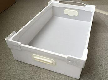 木箱の代替品として提案。使用後の解体、廃棄も容易。※製品に応じて様々なバリエーションに変更可!